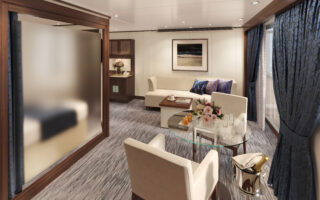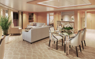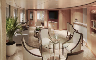 日中は体験イベントの教室の開催、夜はダウンライトの中でライブミュージックや参加型ダンスイベントなどが行われるスペースへと表情を変えながら、乗船中のひと時を優雅に彩ります。