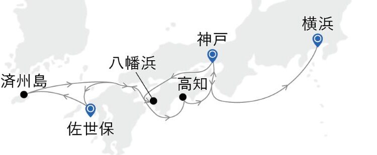 • 記載されたスケジュール・寄港地・出入港時刻・航路は、感染症の拡大防止、気象・海象条件、最少催行人員未達、その他の事情(発着地や寄港地の受入状況等)により、変更される場合がございます。あらかじめご了承ください。